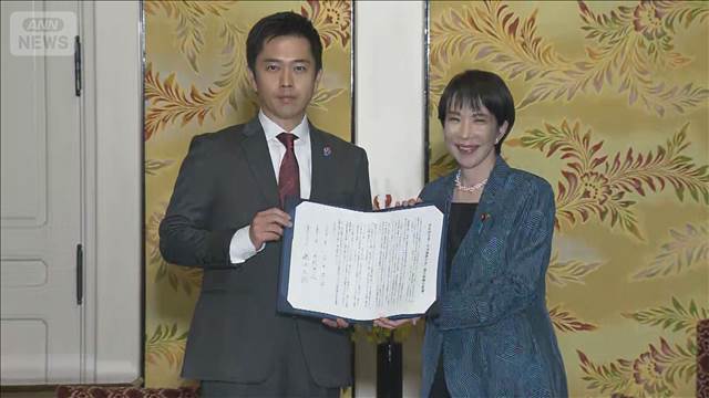 「我々、日本維新の会、まだまだ数も少ない弱小政党でありますが、御党と国家観そして日本を強くしたいという思いを一にしているというふうに思っております。この間、高市総裁と話をさせて頂いて、強い熱量でこの日本を前に進めるんだという思いを私も強く受けました。今一票を持たない子どもたちが大人になった時に、この日本、本当によかったなというふうに思ってもらえるような国を一緒に作っていきたいと思いますので、総裁どうぞよろしくお願いします」