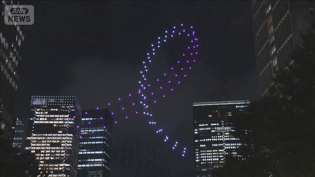 東京・丸の内では夜空をピンクに染めるドローンショーが行われ、小池知事が点灯式に出席しました。