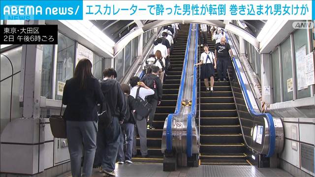 酒酔い男性がエスカレーターで転倒 後ろの男女、巻き込まれてけが