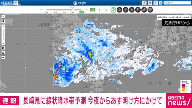 【速報】長崎県に線状降水帯予測 3日夜から4日明け方にかけて 気象庁