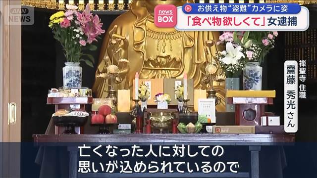 お供え物“盗難”カメラに姿 「食べ物欲しくて」女逮捕