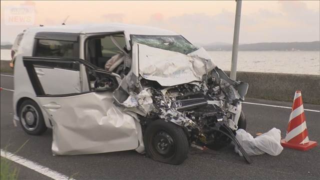 警察などによりますと、軽自動車が車線をはみ出しトラックと正面衝突したとみられています。