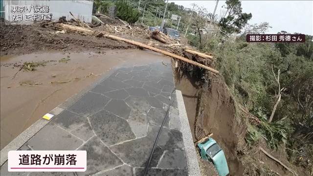 3日前に八丈島を直撃した台風22号。建物は壊れ、島の南に位置する末吉地区では土石流も発生。