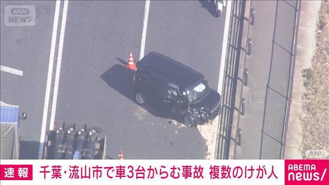 千葉県流山市で3台の乗用車が絡む事故がありました。けが人が複数いるということです。