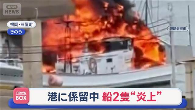 福岡県芦屋町で20日午前8時半ごろ、「船が燃えている」と通報があった後、漁船2隻がほぼ全焼。