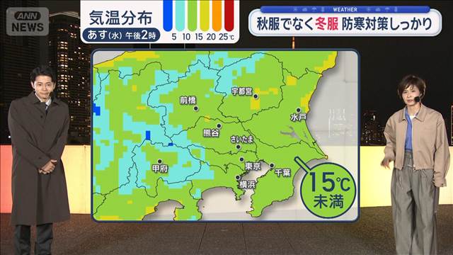 【関東の天気】あす関東は12月の寒さに 秋服でなく冬服 防寒対策しっかり