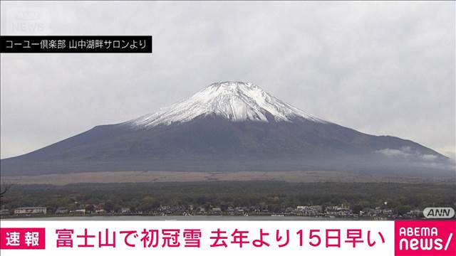 【速報】富士山で初冠雪 平年より21日遅く去年より15日早い 気象庁