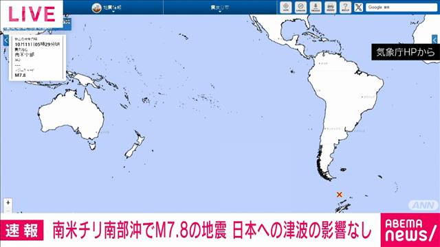 チリ南部沖のドレーク海峡でM7.8の地震 日本への津波の影響なし 気象庁