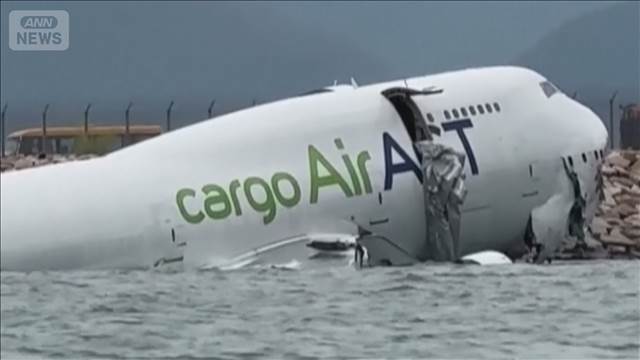 現地メディアによりますと、貨物機は地上で作業をしていた車両と衝突した後に海に転落した可能性があり、この事故で車両に乗っていた2人が死亡しました。