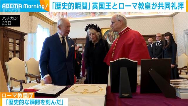 イギリスのチャールズ国王が、ローマ教皇とともに礼拝しました。イギリス国教会とカトリック教会のトップが公の場でともに祈るのは、およそ500年ぶりのことです。国賓としてバチカンを訪問したチャールズ国王夫妻は23日、今年5月にローマ教皇に就任したレオ14世とともにシスティーナ礼拝堂で祈りを捧げました。