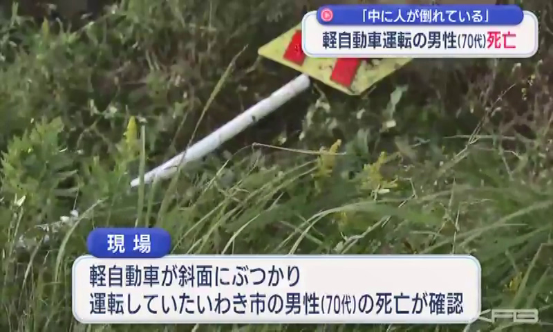 いわき市で斜面にぶつかった軽自動車の中で死亡した運転手の男性(70代)見つかる (福島)