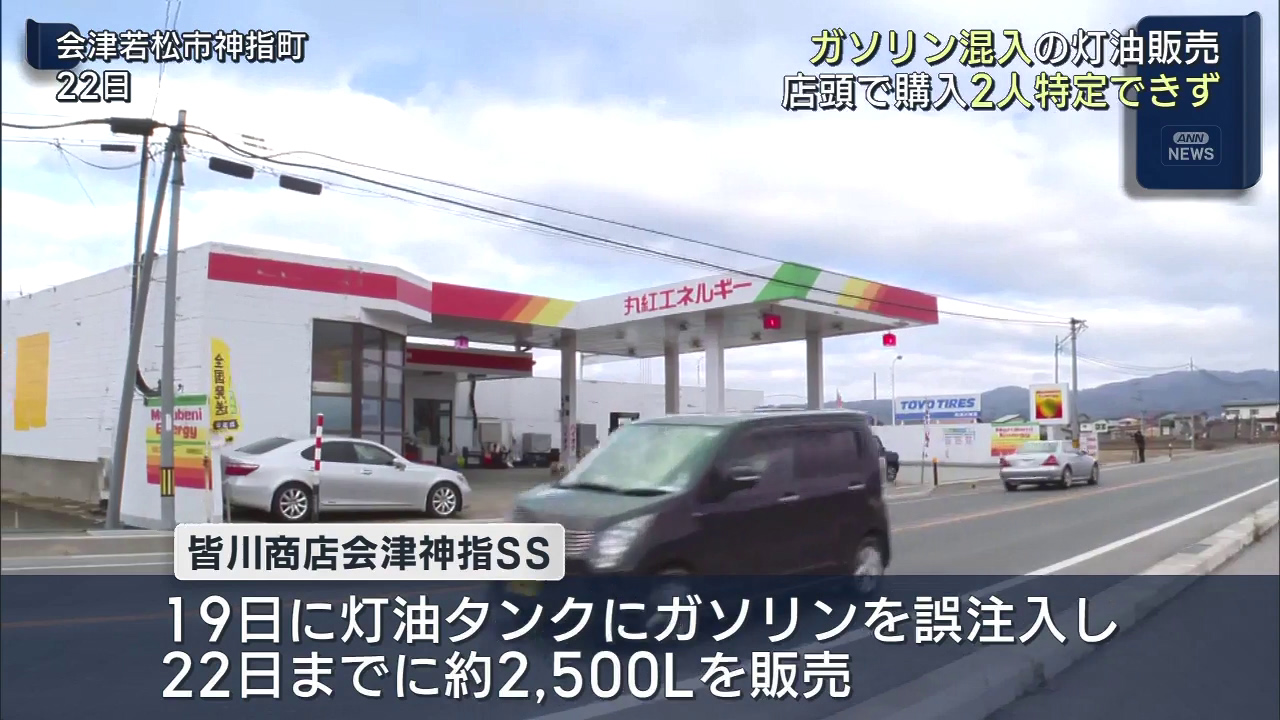 会津若松市で、ガソリンが混ざった灯油が販売された問題で、店頭で購入した2人が特定できていないことが分かりました。会津若松市の皆川商店会津神指SSでは、19日にタンクローリーから灯油タンクに誤ってガソリンを入れ、22日に気付くまでおよそ2500?を販売...