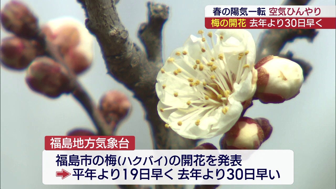 土日の春本番のような暖かさから一転、日中は気温が上がらなかった県内。16日は福島市の梅の開花が発表され、平年より19日、去年より30日早い開花となりました。郡山市西田町の梅の里でもハクバイやコウバイが咲き始めていて、春の足音が一歩一歩、近付いています...