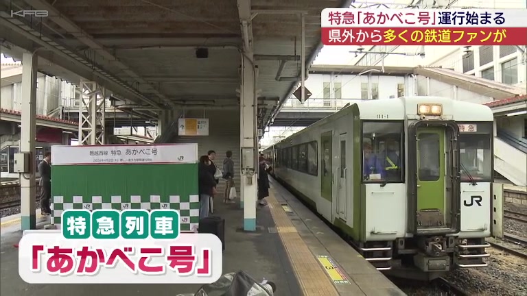 大型の観光キャンペーンに合わせて、特急「あかべこ号」の運行が始まり、出発セレモニーが開かれました。【佐野楓リポート】「いま、多くのファンが出迎えるなか、特急『あかべこ号』が郡山駅に入って来ました」運行が始まったのは、JR磐越西線の特急列車「あかべこ号...