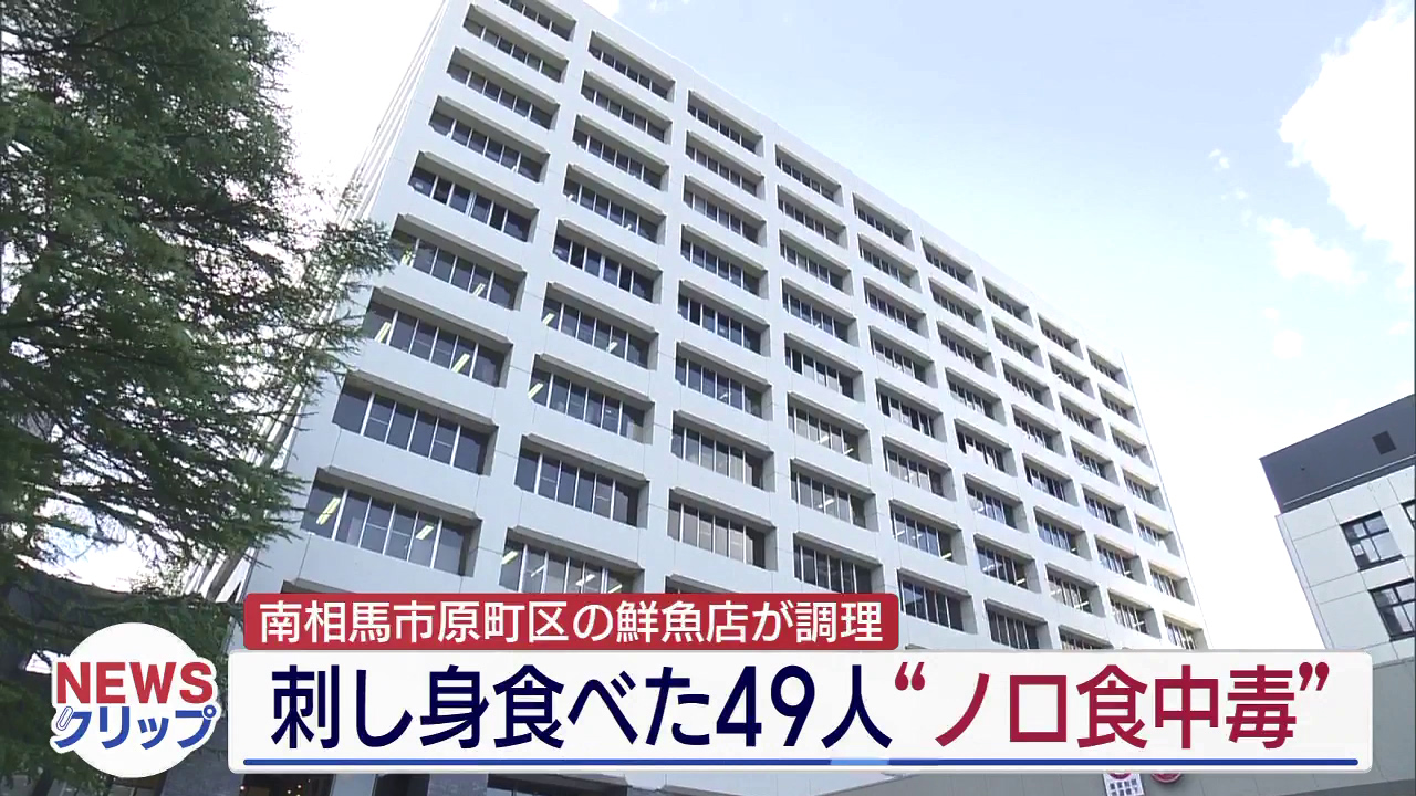南相馬市原町区の鮮魚店が調理した刺し身を食べた49人がノロウイルスに感染し、店は3日間の営業停止処分を受けました。県によりますと、ノロウイルスに感染したのは20代から60代の男女合わせて49人で、12月12日に南相馬市の2つの飲食店を利用していました...