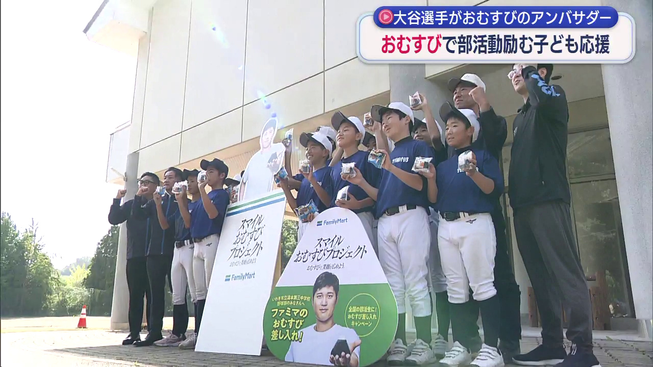 これは大谷選手がパッケージの商品の売り上げの一部を活用した、ファミリーマートのプロジェクトの一環として行われました。全国の17校の部活動に励む子どもたちにおむすびが贈られ、湯本第三中学校野球部は、新入部員が増えて単独チームで試合に出場できるようになり...