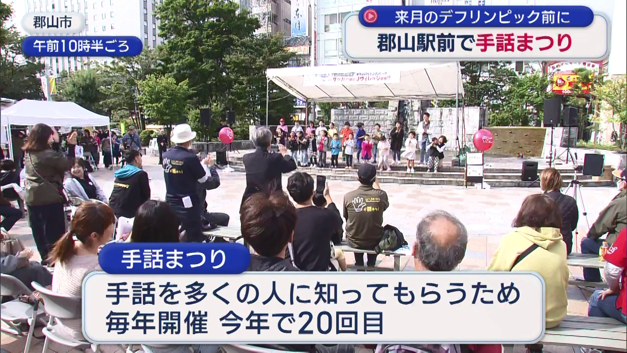 『東京2025(にーぜろにーごー)デフリンピック』を前に、郡山市で手話への理解を深めるイベントが開かれました。『手話まつり』は、手話を多くの人に知ってもらおうと毎年開催されています。イベントでは子どもたちが手話で歌を披露したほか、11月のデフリンピッ...
